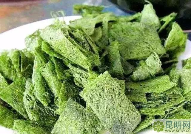 在青苔上撒些姜末、鹽水后曬干,制成青苔片。將青苔片剪成小塊入油鍋,炸至金黃,即可食用。經(jīng)過高溫油炸,青苔的腥味被去除,炸好的青苔,香氣撲鼻,初嘗香酥可口,細品回甜。