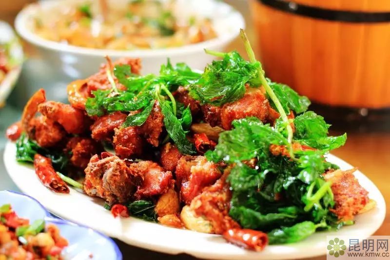 薄荷炸排骨是讓云南人心心念念的一道菜。薄荷可以佐葷,把原本油膩的炸排骨變得小清新起來,中和了肥膩的口感,加入了薄荷的清爽和香脆。
