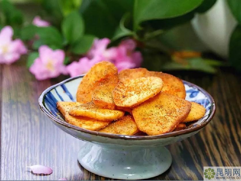 在云南各個地方的大街小巷你總能找到炸洋芋的身影,人們會圍坐在小攤旁,看著菜籽油炸得金黃的土豆塊若有所思,最后端著土豆蘸著辣椒面,吃得津津有味。一份炸洋芋,讓身處云南的你在哪兒都能感受到家鄉(xiāng)的味道。