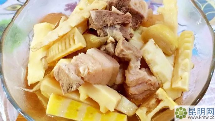 在昭通市永善、大關、鹽津等縣,有一道菜叫豬腳燉竹筍。夾一筷竹筍放在嘴中,慢慢嚼,清香爽口的竹筍味總是叫人回味一陣子,一吃便忘不了。
