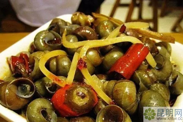 將螺螄放進已加熱的炒鍋里,加適量鹽翻炒,待螺螄水汽炒干,螺蓋脫落便放油,油熱再放水,水漲便放酸筍,煮到一定時長后加花椒、辣子、薄荷即可食用。吃螺螄可用一支筷子把螺肉自頭部頂進尾,封住氣口,然后嘴接螺螄口一吸,一團鮮美的螺肉便滑進口里。