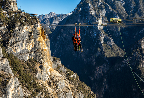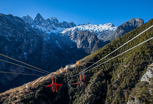 體驗之時,短時間內穿越云海、遙望山川,巴拉格宗的美景盡收眼底。坐在高空之上便能俯瞰巴拉格宗全貌,藍天白云觸手可及,像泰山般穿梭在山水叢林間,在驚險刺激的高速體驗下擁抱自然。