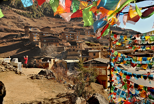 “巴拉”一詞源于藏語音譯,意為自巴塘遷徙而來的藏族村落。巴拉村坐落在香格里拉大峽谷中部的格宗雪山下海拔2900米的山腰上,沿崗曲河谷垂直而上700米左右的地方。