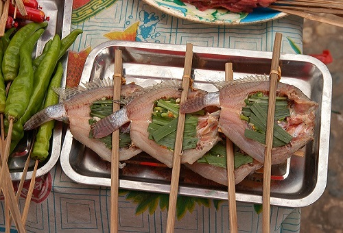 香茅草烤魚是傣族的特色菜,用當地生長的青竹片夾住被充滿獨特香味的香茅草和香菜腌制過的魚,用明火烤。魚肉外層香脆,內層鮮嫩又富有滋味,一定別錯過!