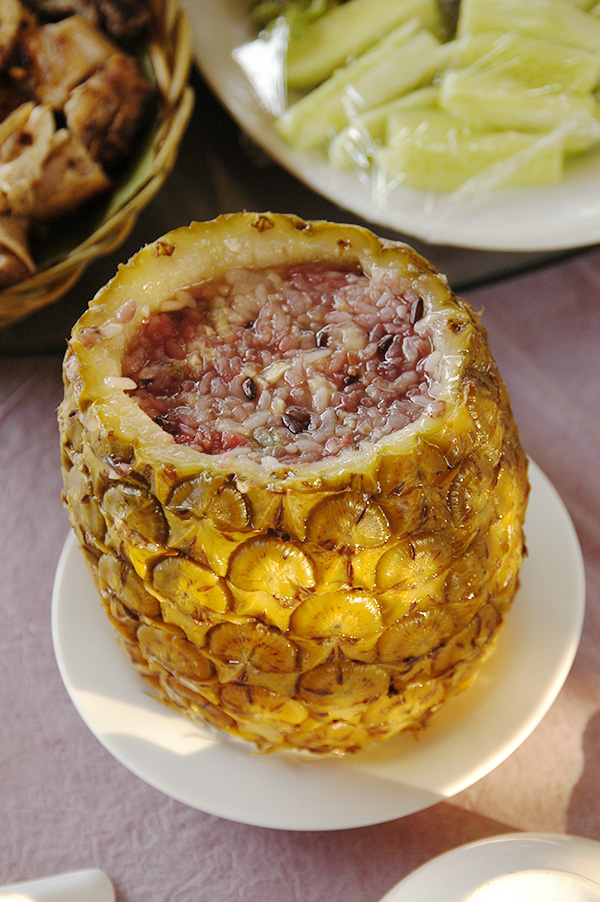 采用西雙版納特產的亞熱帶水果——菠蘿,菠蘿的酸甜和獨特的芳香氣味,與糯米飯醇香潤滑的雙重口感結合,一定令你難忘。