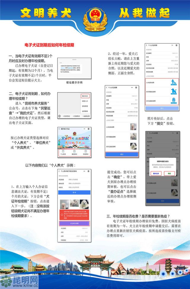 《通告》明確,重點區(qū)域內的養(yǎng)犬人,應當及時通過“昆明市養(yǎng)犬管理服務平臺”微信公眾號主動登記犬只相關信息,并按照就近原則到具備犬只疫苗注射資質的動物醫(yī)院(診所)注射疫苗,經審核相關資料后辦理養(yǎng)犬登記電子犬證。違反規(guī)定的,由公安機關責令限期改正,處200元罰款;逾期不改正的,沒收其犬只。