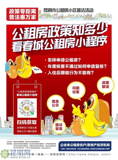 “能夠讓中低收入、住房困難家庭入住公共租賃住房,實現公共租賃住房的精準保障,一直以來都是昆明住房保障體系同仁們共同努力奮斗的目標,開展公共租賃住房小區普法行動和研發上線’春城公租房’小程序的初衷也在于此。”昆明市住房保障局相關負責人在會上表示,希望通過不懈地努力,使公共租賃住房租用更加規范,轉借、轉租等違規行為不斷減少。各級住保部門都將認真貫徹落實黨中央、國務院及省、市黨委、政府對“住房保障”工作的各項要求,致力于讓公租房住戶實現“住有所居”到“樂有所居”再到“居有所安”的轉變。
