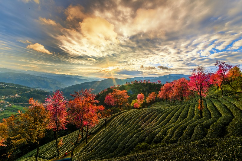無量山大山深處這個叫“櫻花谷”的地方,她的本名叫做“蛇腰箐”,一個先輩們叫了千百年的、甚為曼妙的名字。后來,兩位愛茶的臺灣茶商來到此地種茶,為遮陰,在種下茶樹的同時,還種下了一株株冬櫻花。櫻花樹長成,臘月開花,恣意盎然,與碧綠整齊的茶園相襯,形成了櫻花盛景,漸漸的,眾人就把這個地方稱作“櫻花谷”了。而今,無量山茶園的櫻花開了,在寒冬臘月時分,開遍了山谷,引來無數(shù)攝影高手爭相“捕風(fēng)捉影”,無量山也以別樣風(fēng)情被世人重新認(rèn)識。