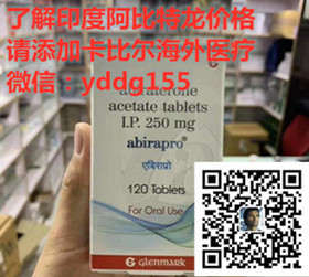 印度阿比特龍價格是在1900~2200元一盒,印度阿比特龍代購一瓶規格是『0.25g*120片裝/盒』,印度阿比特龍價格1900~2200元左右一盒,患者購買印度阿比特龍價格在1900~2200元一盒。阿比特龍作為前列腺癌靶向藥,患者不僅關心印度阿比特龍價格,還關心國內哪里代購印度阿比特龍,印度阿比特龍哪里買到兩種方法:第一種可以自己去印度大型權威醫院或印度當地藥房購買,第二種可以通過聯系專業醫療團隊比如卡比爾海外醫療【微信:yddg155】